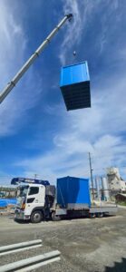 令和7年8月18日(月)北海道勇払郡むかわ町の會澤高圧コンクリート株式会社鵡川工場様に特注製作のコンテナトイレを2棟納品させていただきました🚾