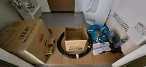納品製品:TC10K-ML(床下便槽付簡易水洗トイレ)×2棟ほか