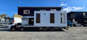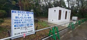 令和7年10月16日(木)福島県石川郡玉川村にある玉川村民グランド災害用仮設トイレ設置工事としてコンテナトイレを1棟納品させていただきました🚾 現在仮置き中ですが、今後車椅子の方がご利用できるようスロープなどの工事を進め、平時もご利用いただきながら災害時には必要とされる場所に移動してご利用いただくよう、避難所機能の強化を目的として導入していただきました。